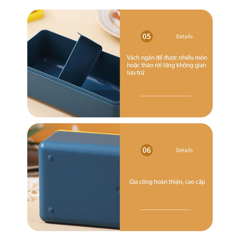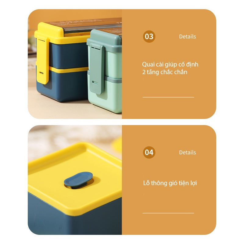 Hộp cơm văn phòng Lunch Box thiết kế 2 tầng và cùng 4 ngăn tiện lợi, để được nhiều loại thực phẩm khác nhau